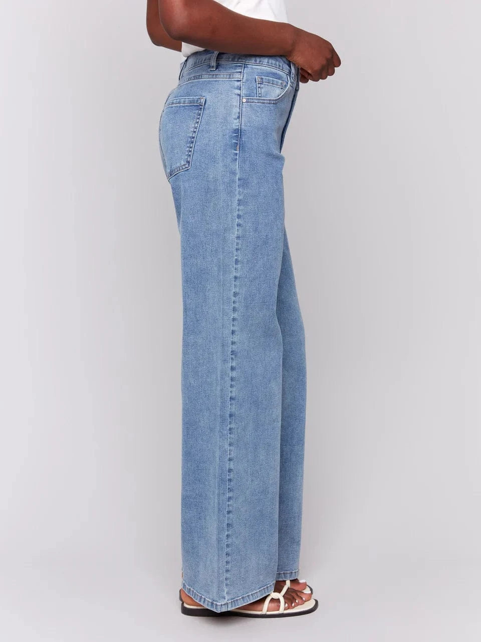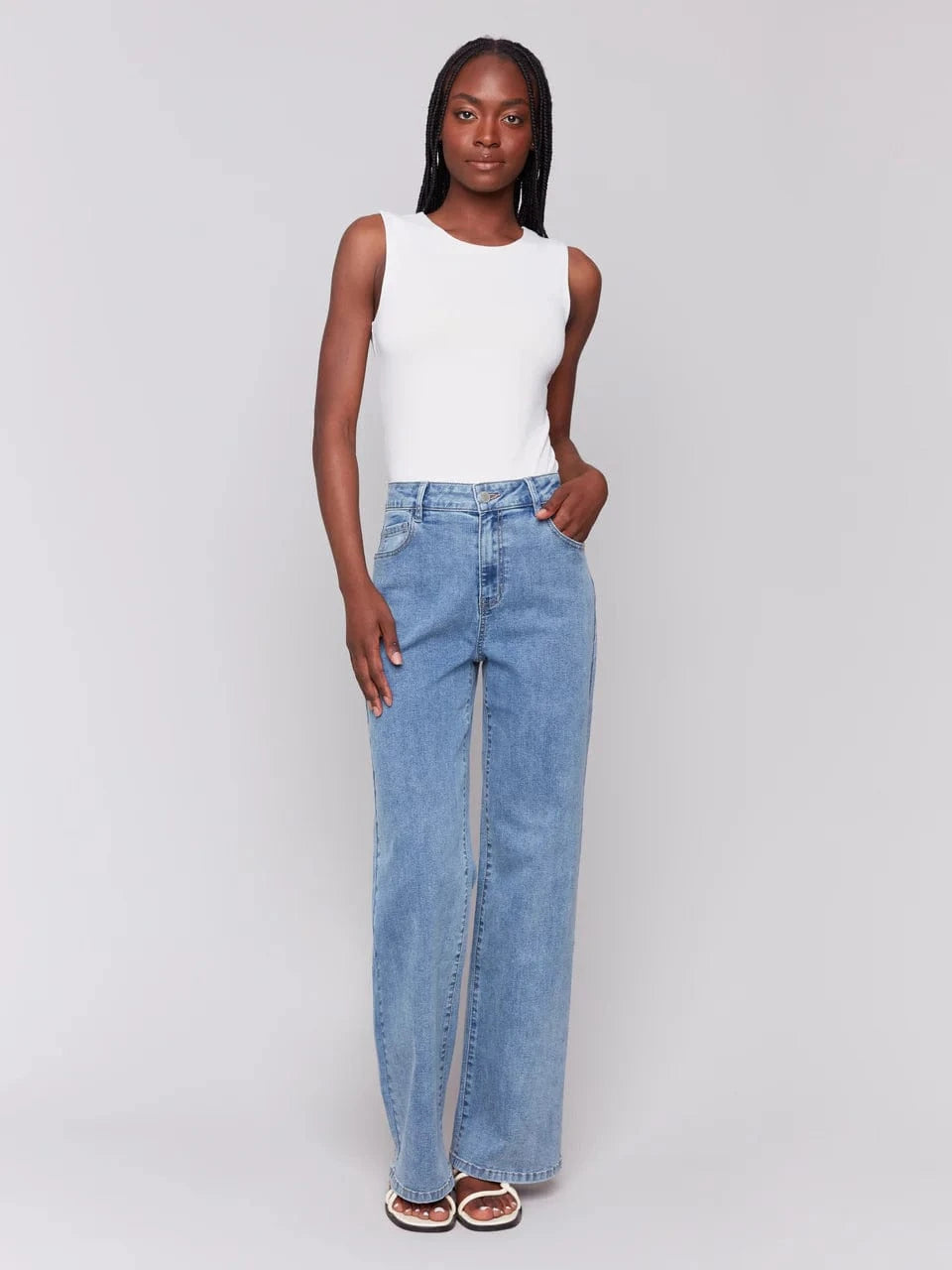 Command attention in our striking light blue wide-leg jeans, crafted for every occasion from laid-back days to nights on the town. The ultimate blend of comfort and style, these jeans boast a flexible waistband ensuring a perfect fit. A must-have for any denim lover, these jeans elevate your collection effortlessly, don’t wait to add them to your spring wardrobe!