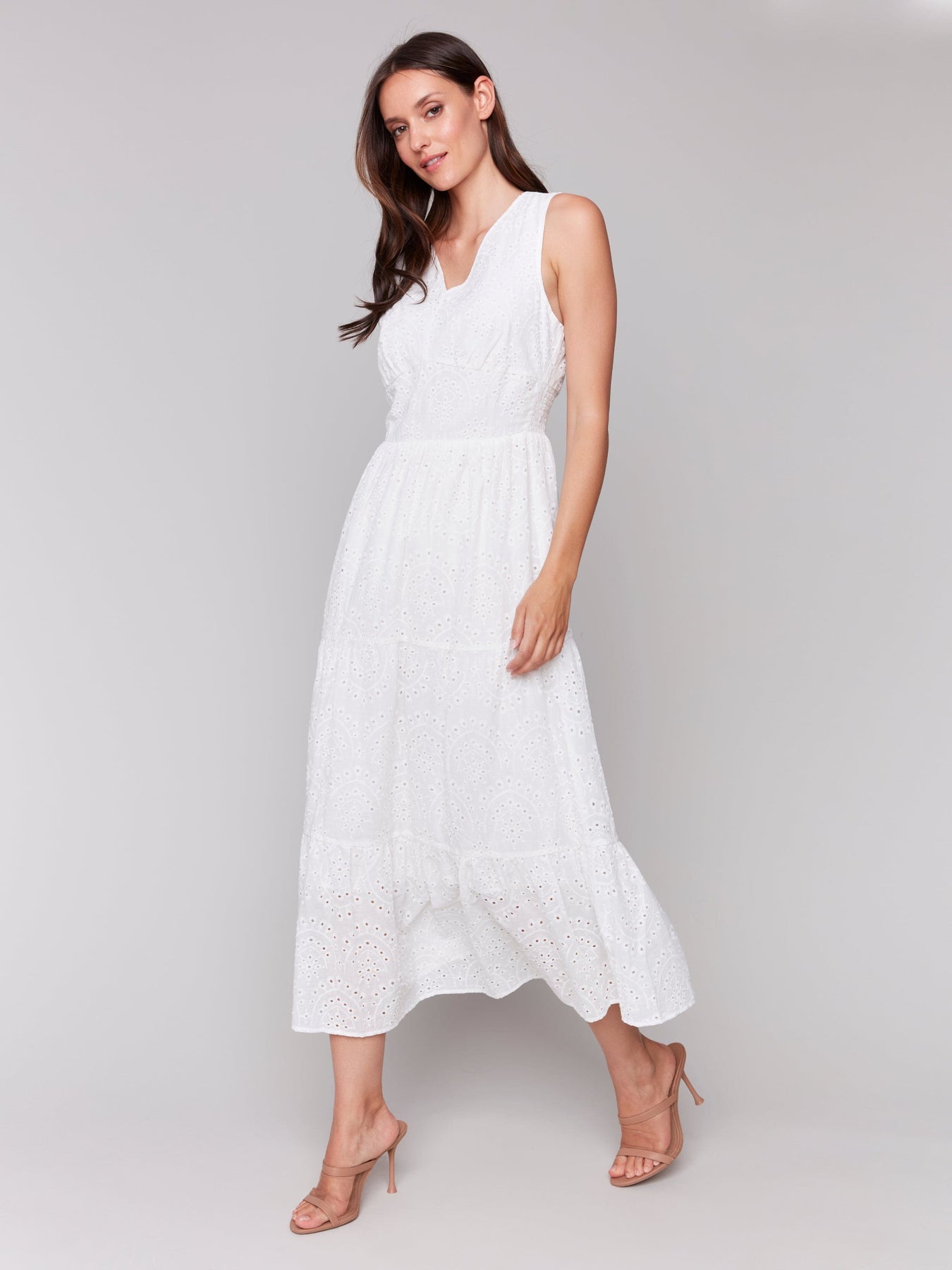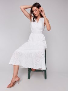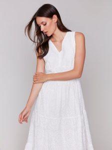 Home Pants Charlie B Tiered Lined Eyelet Dress With Waistband – C3208
